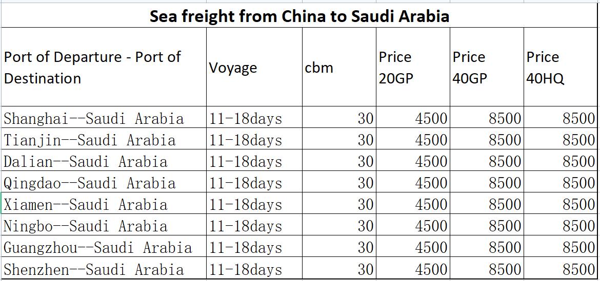 Take Saudi Arabia as an example, sea freight to the port of Riyadh in Saudi Arabia.