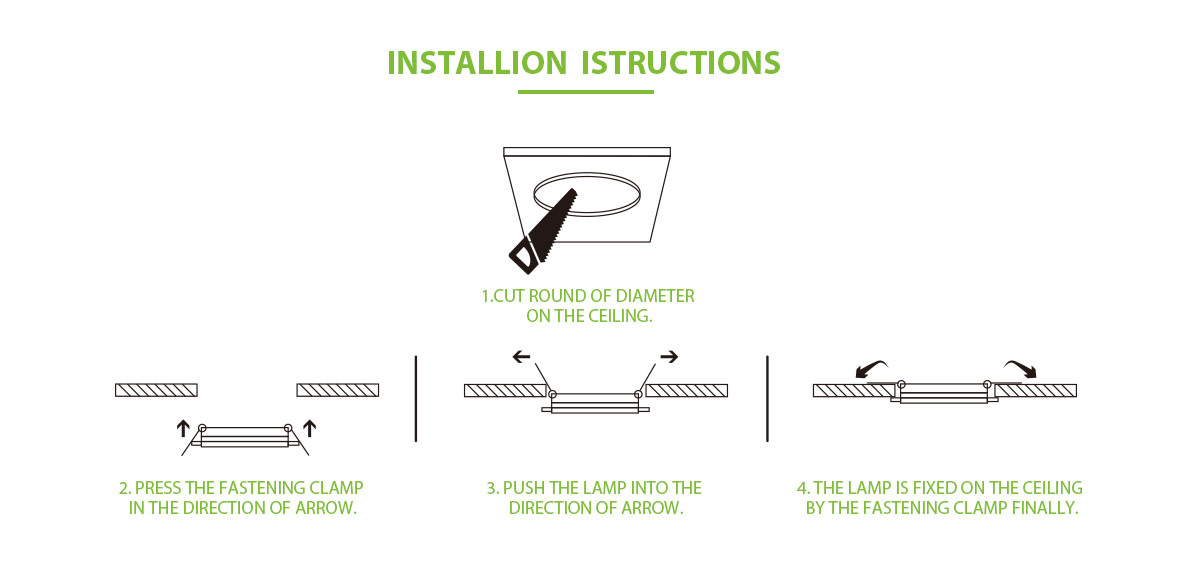 قم بقطع فتحة (الحجم المطلوب) في السقف، متصلة مباشرة بمصدر طاقة AC100V-240V، بدون الحاجة إلى محول أو ملحقات أخرى.