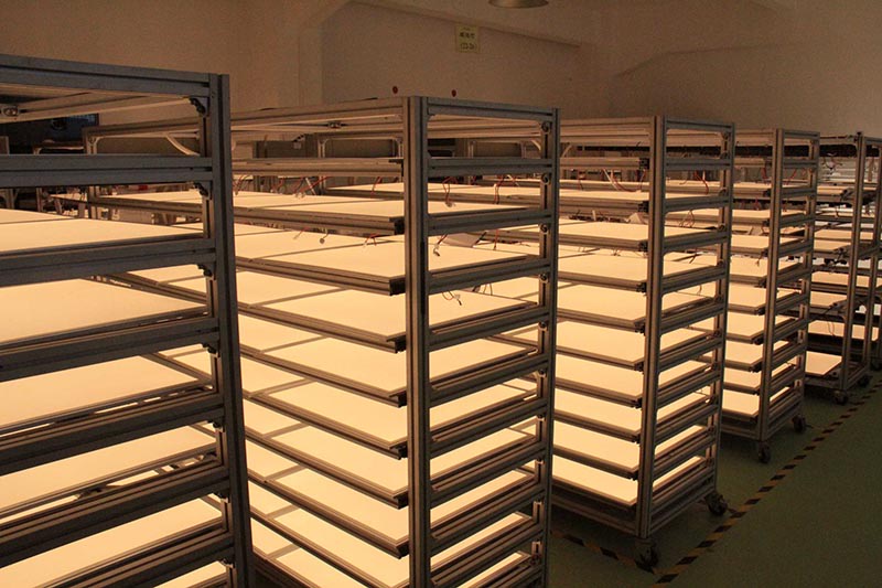 يجب وضع المصباح على الرف القديم وتوصيله بحامل مزود الطاقة المقابل وفقًا لجهد الإدخال للمنتج. قم بتشغيل مفتاح إطار اختبار الشيخوخة وتحقق مما إذا كانت كل وحدة إنارة مضاءة بالفعل للتأكد من أن المصباح يعمل بكامل طاقته أثناء عملية التقادم. خلال فترة التقادم، لا يمكن للمصابيح أن تقدم ظواهر سيئة مثل الضوء الميت، الضوء الداكن، الوميض، تبديل ضوضاء مصدر الطاقة، إلخ.